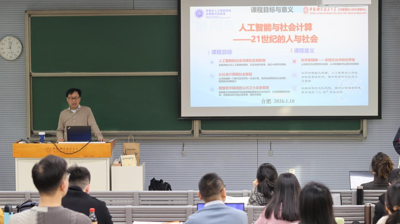 为拓宽公共管理专业学位学生的跨领域视野,提升MPA专业学生人工智能、健康管理和科技前沿分析能力,应公共事务学院邀请,2026年1月10日至11日,中国科学院曹志冬研究员开展题为《人工智能与社会计算——21世纪的人与社会》的专题授课,中国科学技术大学附属第一医院(安徽省立医院)健康管理中心副主任张永亮,开展题为《现代健康管理中的风险防范与智能技术应用》的专题授课,中国科学技术大学化学与材料科学学院吴宇恩教授开展题为《全球科技发展与前沿》的专题授课。2025级非全日制MPA班全体同学参加了本次授课。